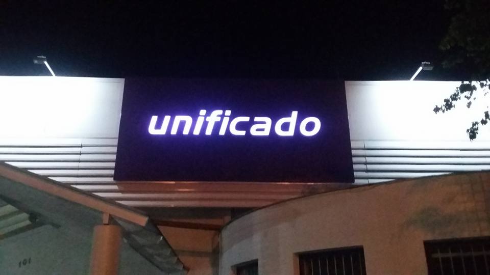Serviço: Revestimento em vinil oracal violeta 040, letras 3d produzidas em chapa galvanizada, com face em acrílico leitoso 3mm, retro iluminadas por módulos de led, ambiente interno, letra 3d em chapa galvanizada com pintura automotiva.